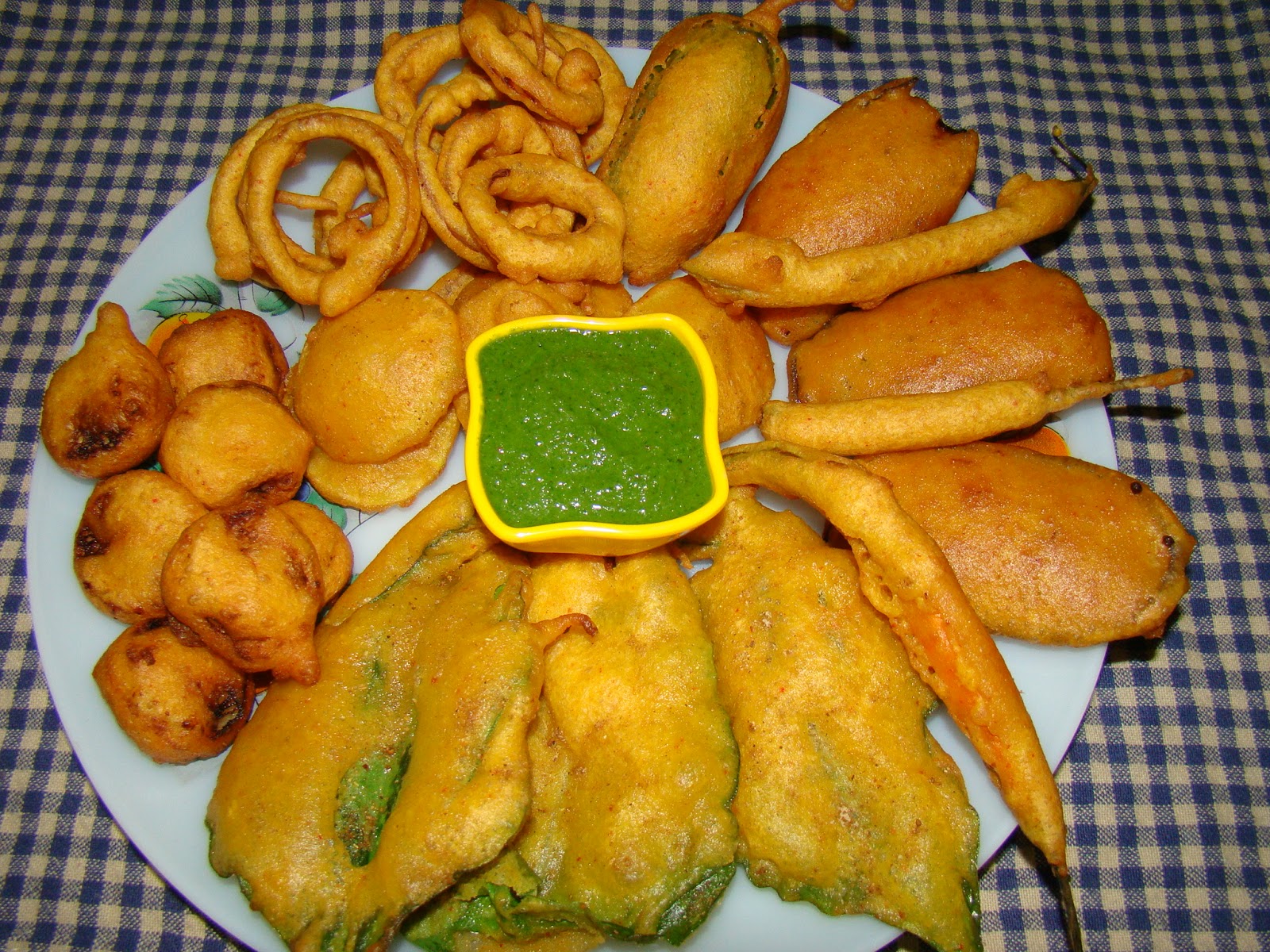 Home Snacks Different Types Of Pakodas ( Onion Rings , Baigan Pakoda , Mirchi Pakoda , Palak Pakoda , Kele ke Pakode , Alu Pakoda )