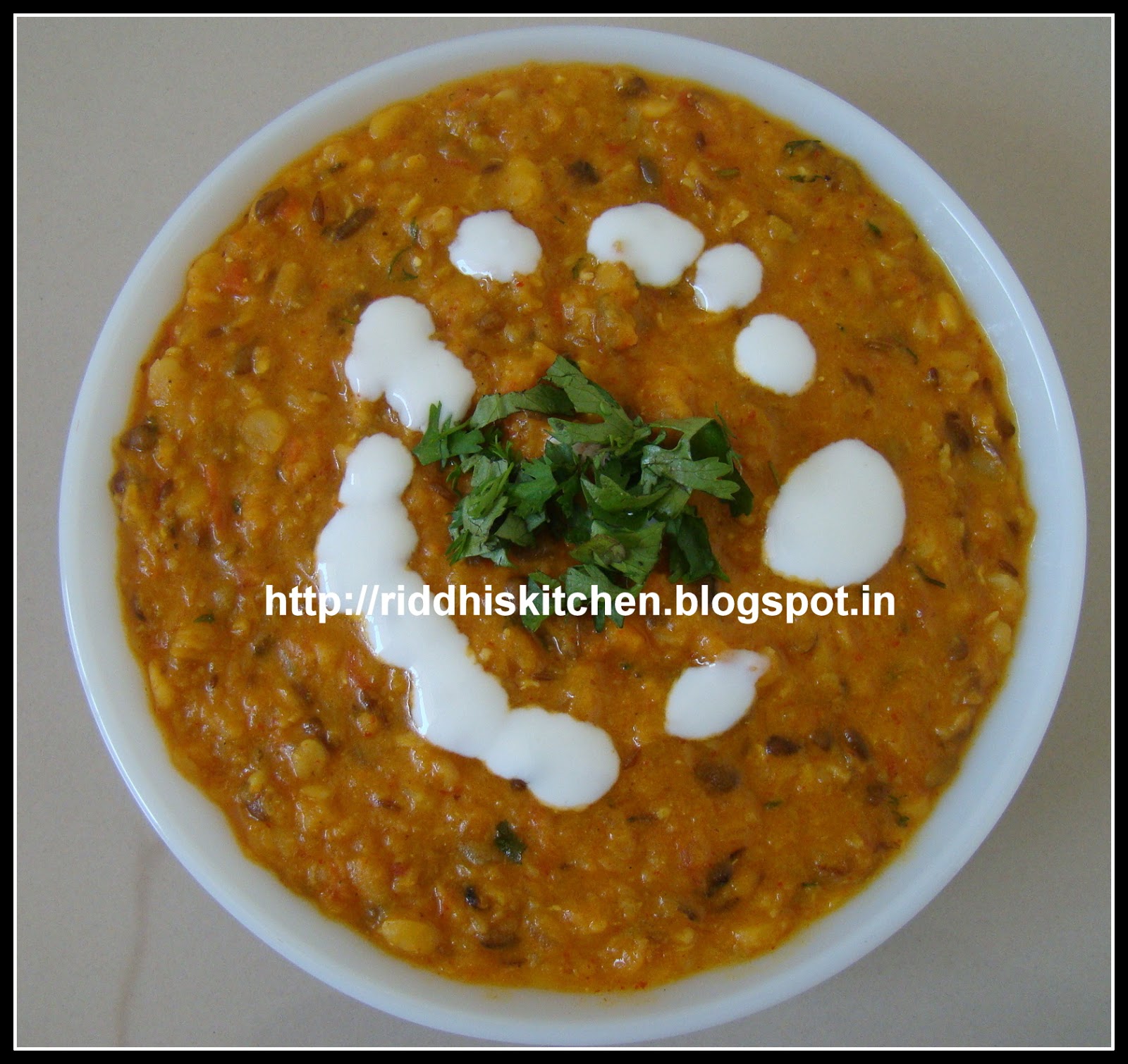 Add yogurt and cook for two minutes more. Add cooked dals, two third cup water and salt and allow the mixture to come to a boil.