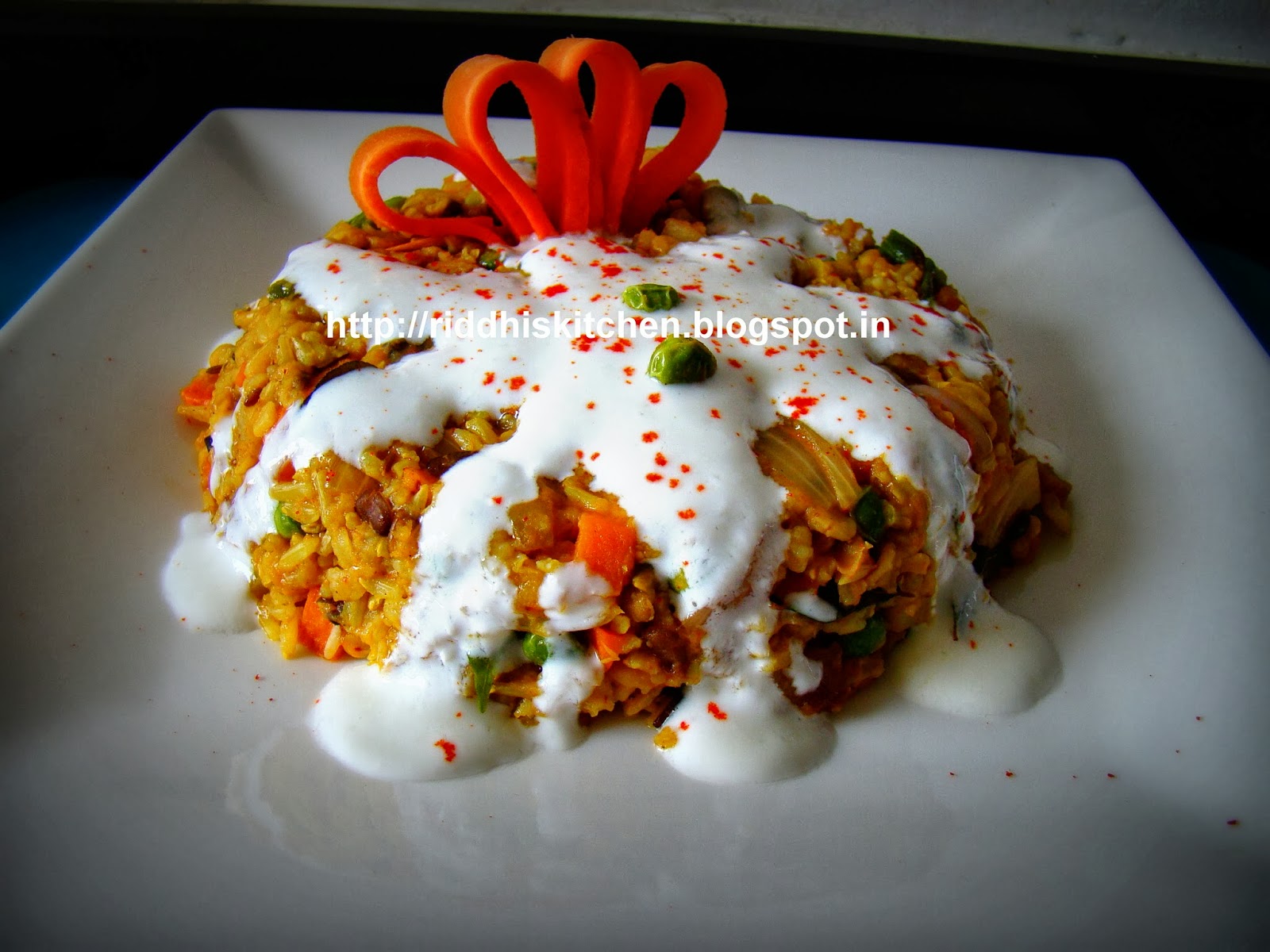 Garnish with carrot slices and serve with masala dahi( curd ).