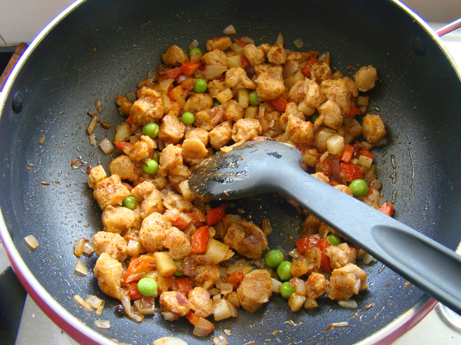 Heat 1 cup of water, boil soya chunks for 5 minutes. Remove excess water and keep aside.