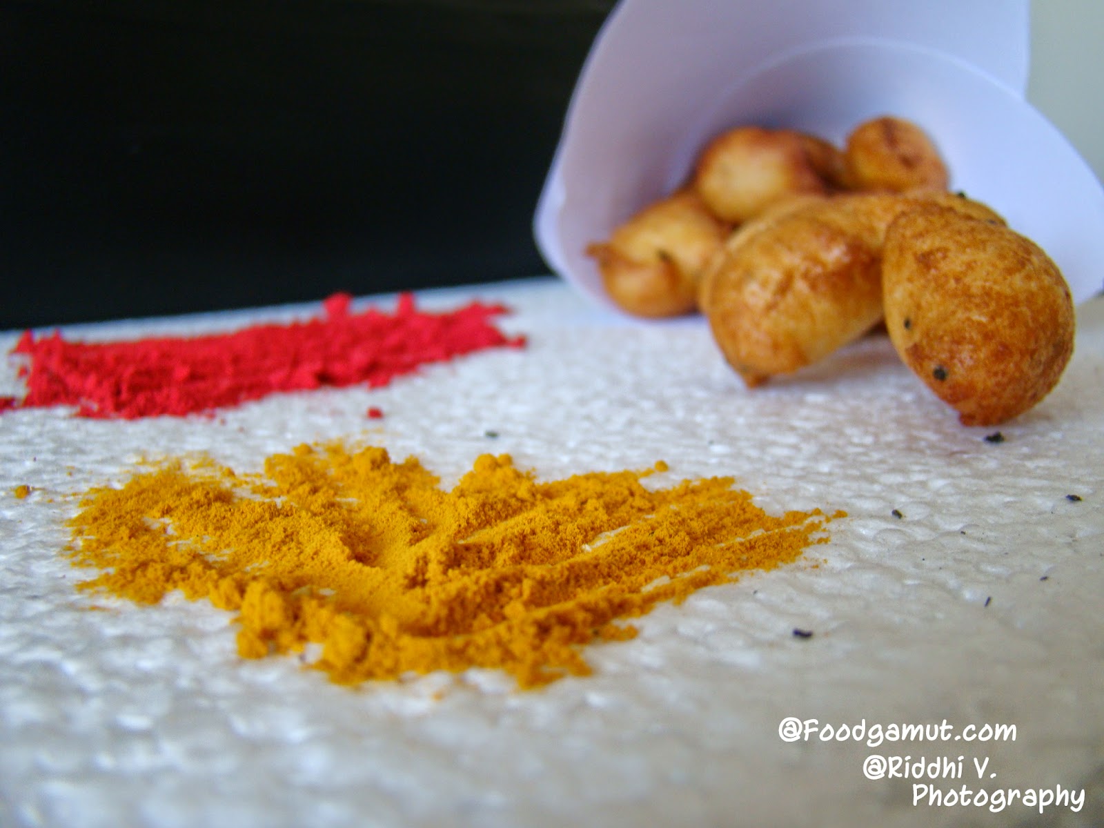 Heat sufficient oil in kadai for deep frying pakodas. Drop batter in tablespoonful in it and deep fry until light brown.