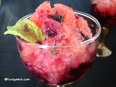 An easy to make, refreshing dessert which can be made with any fruit. A refreshing chilled drink made from watermelon and mint is perfect for summer and summer parties… I combined with black grape crush. Believe me this black grape crush goes well with watermelon. Must try.